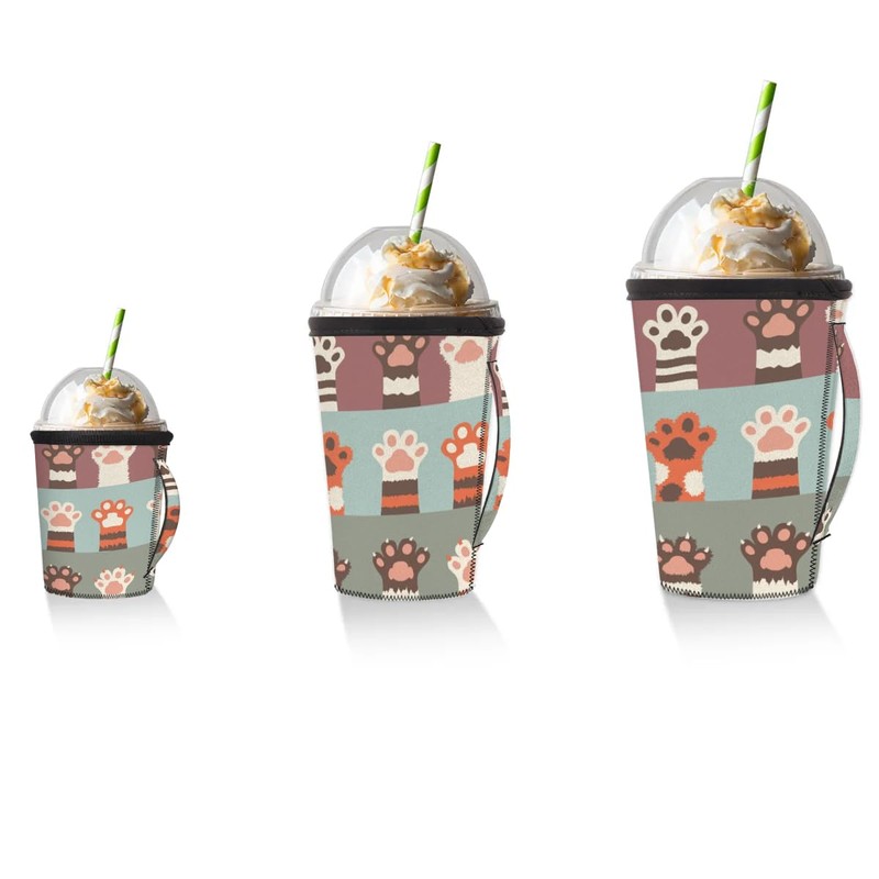 Animal Cat Paw Reusable Iced Coffee Sleeve with Handle Neoprene Cup Sleeve For Soda, Latte, Tea, Beverages, Beer (30-32 oz)