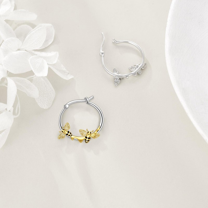 - Design: The bee hoop earrings made of S925 sterling silver are characterised by a beautiful design. Two bees diligently brew honey on the earrings and seem to whisper, which is unique and sweet.