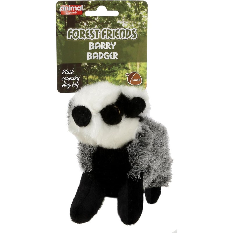 Animal Instincts Forest Friends Squeaky Plush Dog Toy Soft Comfort Puppy Toy Barry Badger - Small