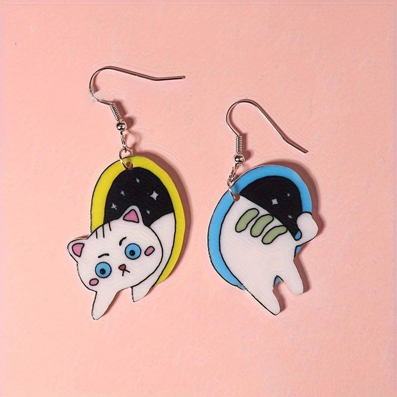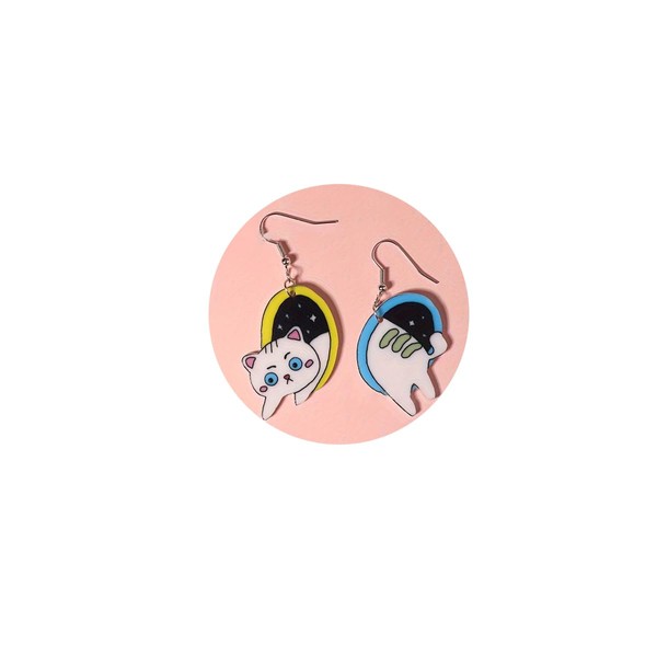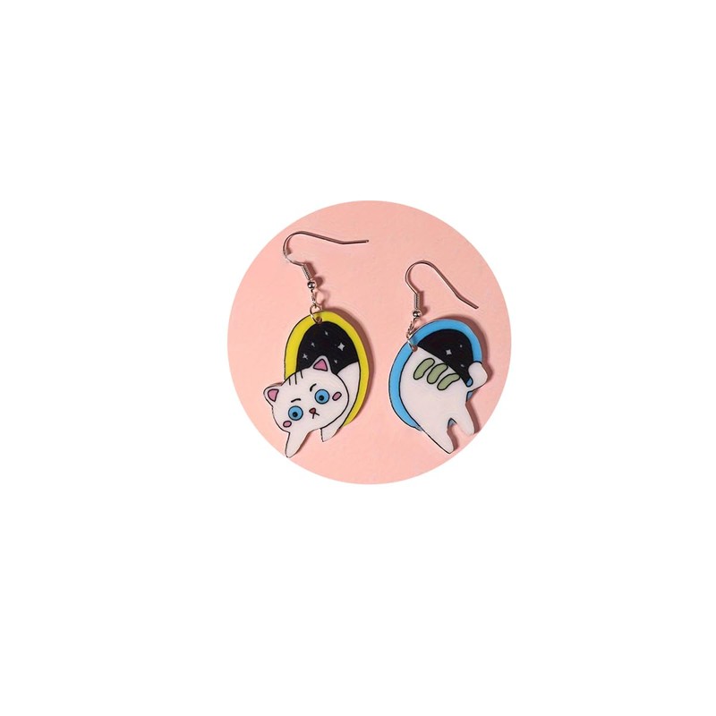 - cat earrings: the earrings are made of acrylic resin, advanced printing technology, lead free, nickel free, low allergy, very light weight, can be easily worn all day, please keep dry when not wearing.