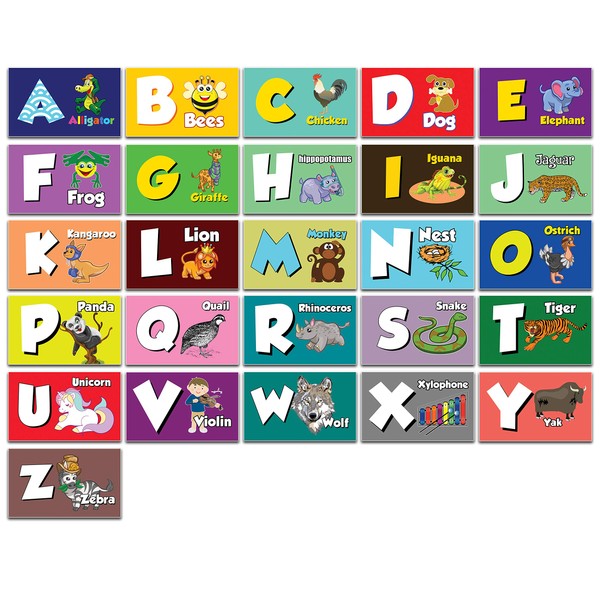 Animals Alphabet Flash Cards for Children (26 Cards x 2 Set - 26 Cards with Front and Back Designs x 2 Sets)