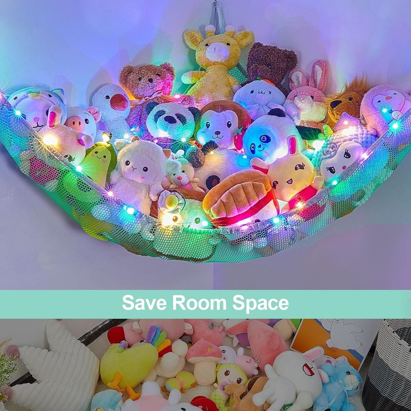 - Toy Hammock: Our stuffed animals net or hammock can be a decoration for your kidsroom; Come with LED light, can add a cozy and fun atmosphere
