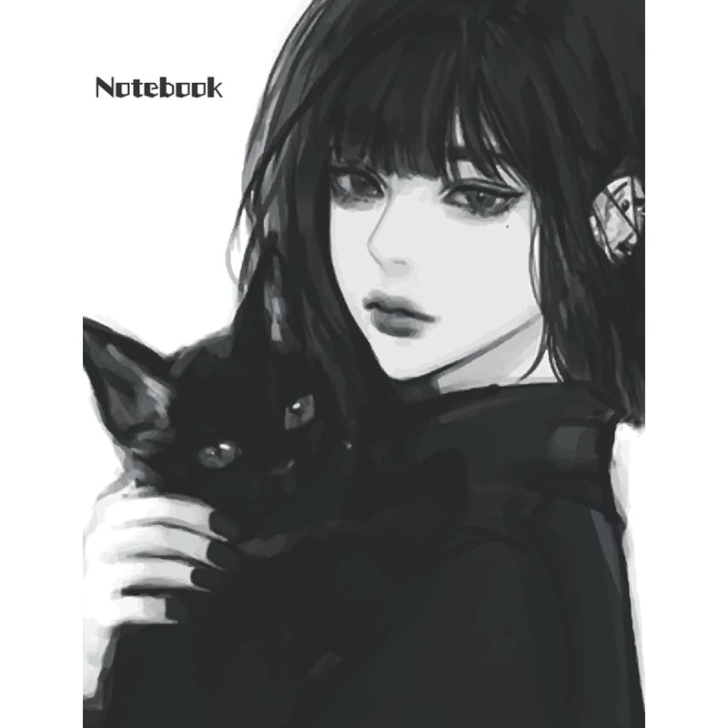 Anime Aesthetic Notebook Journal: Blank Lined Journal Notebook, College Ruled, Black and White Aesthetic Anime Notebook