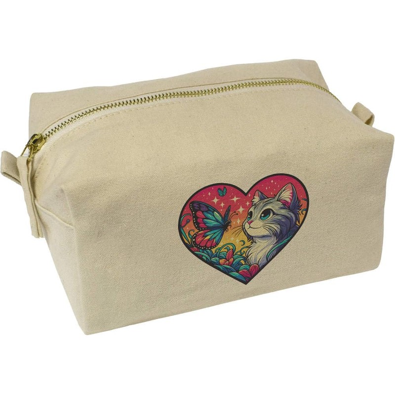 'Anime Cat with Butterfly' Canvas Wash Bag/Makeup Case (CS00041465)