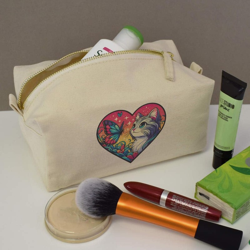 Store your toiletries, makeup or accessories in this fantastic canvas bag. Printed on one side with a unique design and made from 100% brushed cotton canvas. The bag is strong and durable with a zip closure.