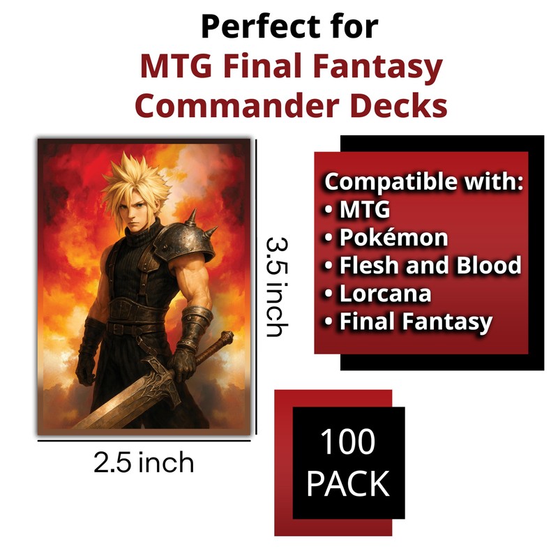 Anime Mercenary Soldier Card Sleeves 100 Pack – Compatible with MTG & TCGs – Perfect for Cloud Final Fantasy Commander Decks – Premium Card Game Sleeves for Magic
