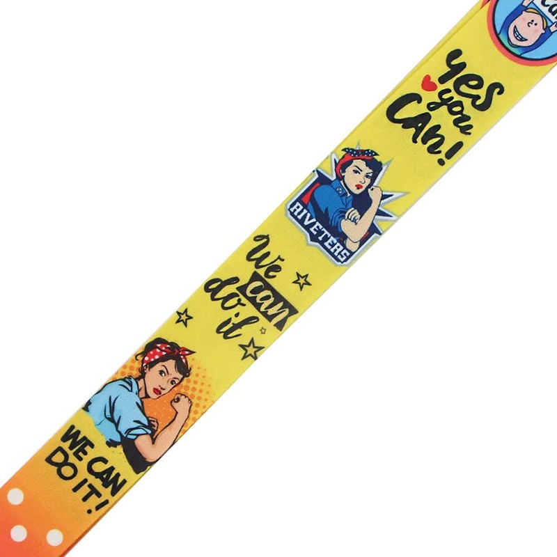 Anime Source Feminism Woman Power Strength Yes You Can Girls Yellow Rosie Labor Icon Lanyard Keychain ID Badge Holder