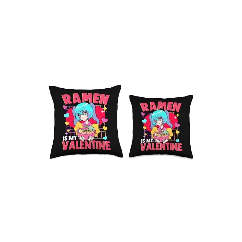 Anime Valentines Day Tees NYC Anime Valentine Pho Ramen Soup Girlfriend Bestie Throw Pillow, 18x18, Multicolor