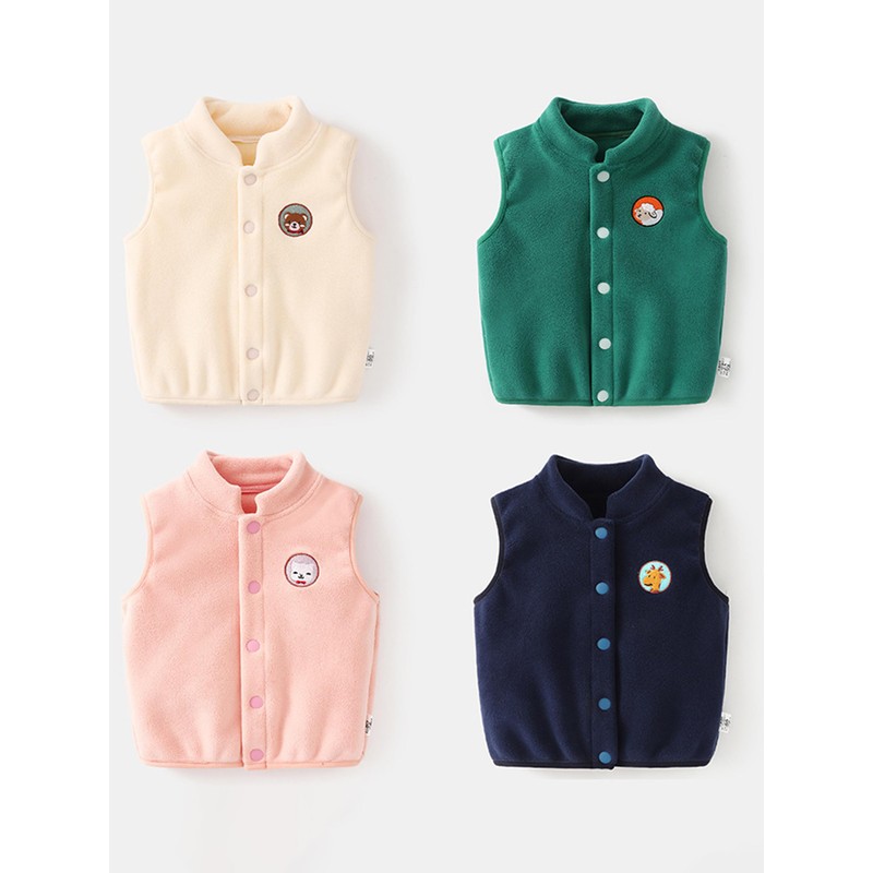 ANIMQUE Baby Toddler Gilet Polar fleece Gilet Stand-up Collar Snap Button Jacket Sleeveless Jacket Spring Autumn Winter Transition Season Children Warm Vest, Pink 73