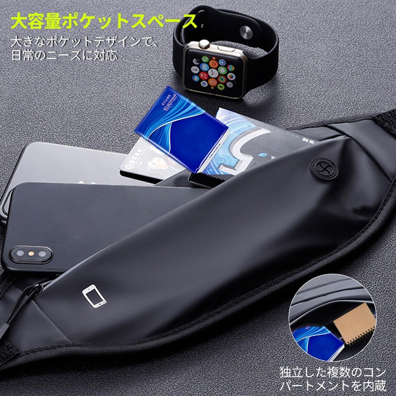 aninako Waist Pouch, Running Pouch, Jogging Pouch, Non-Shaking, Large Capacity, Waterproof, Lightweight, Thin, Light Reflecting Material, Smartphone Compatible, Night Activities, Waist Belt, Mountain