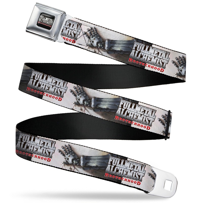 Aniplex - Cinturón con hebilla para cinturón de seguridad, Fullmetal Alchemist Brotherhood Edwards Automail Arm Tan, ajustable, Blanco, 1.5" Wide - Fits Pant Size 32-52