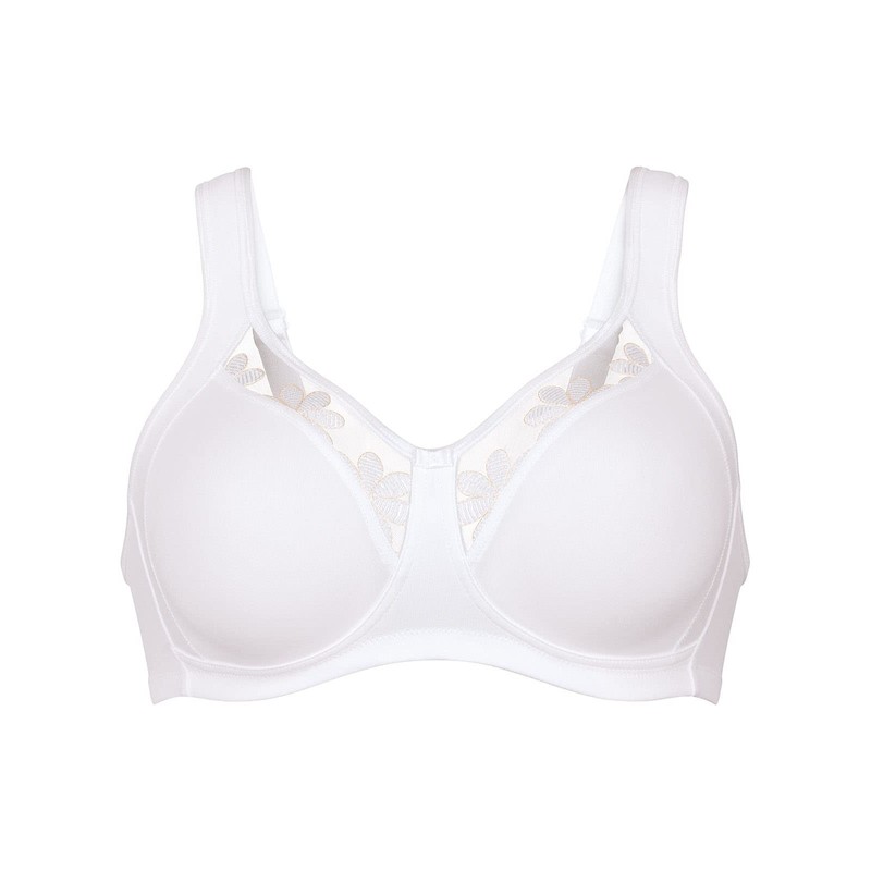 Anita Comfort Bra 5808 Brand: Anita Item no. 5808. Sophia collection. Moulded cups without underwire. Upper cup with floral tulle embroidery. ✓ Side support panels made from robust knitwear. Wide comfort straps adjustable in the back. Hook closure in the back.
