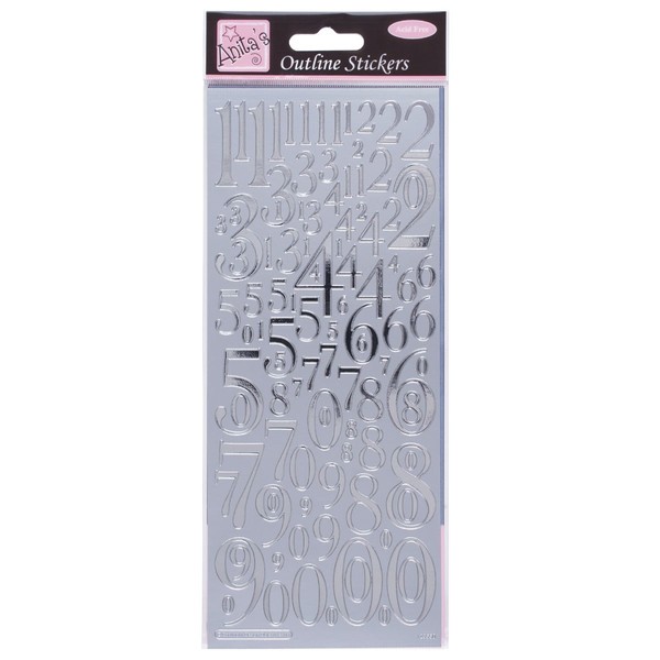 Anitas Outline Stickers, Mixed Numbers, Silver, For Scrapbooking, Card Making, Kids Play, Homework, Art, Craft, Embelish, Decorative, Paper, Card, Glass, Metal, Plastic, Foam