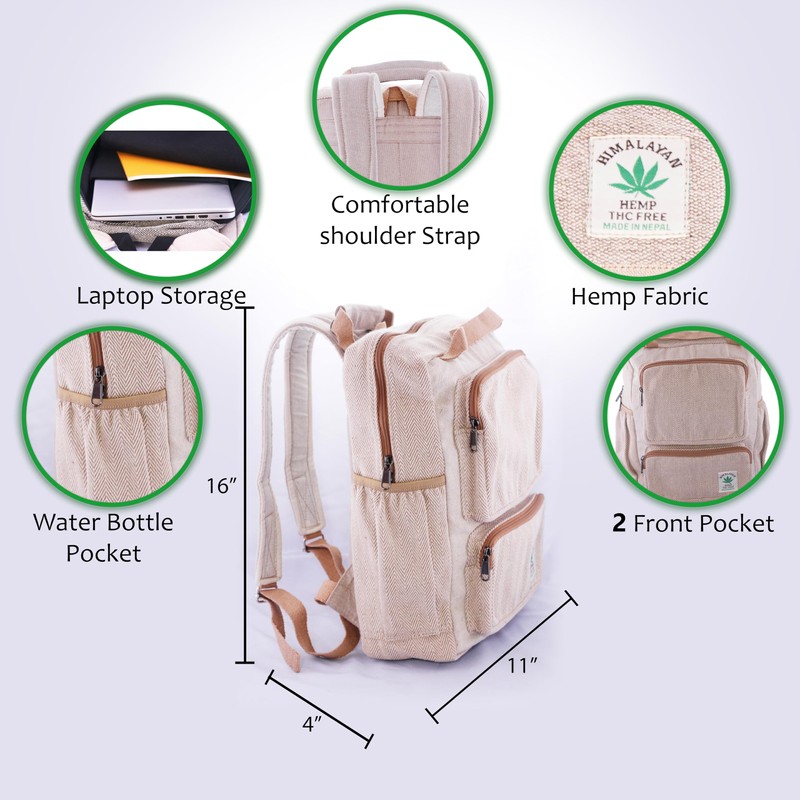 - EYE-CATCHING DESIGN: Handcrafted in Nepal using wild hemp and cotton, this unique backpack turns heads wherever you go