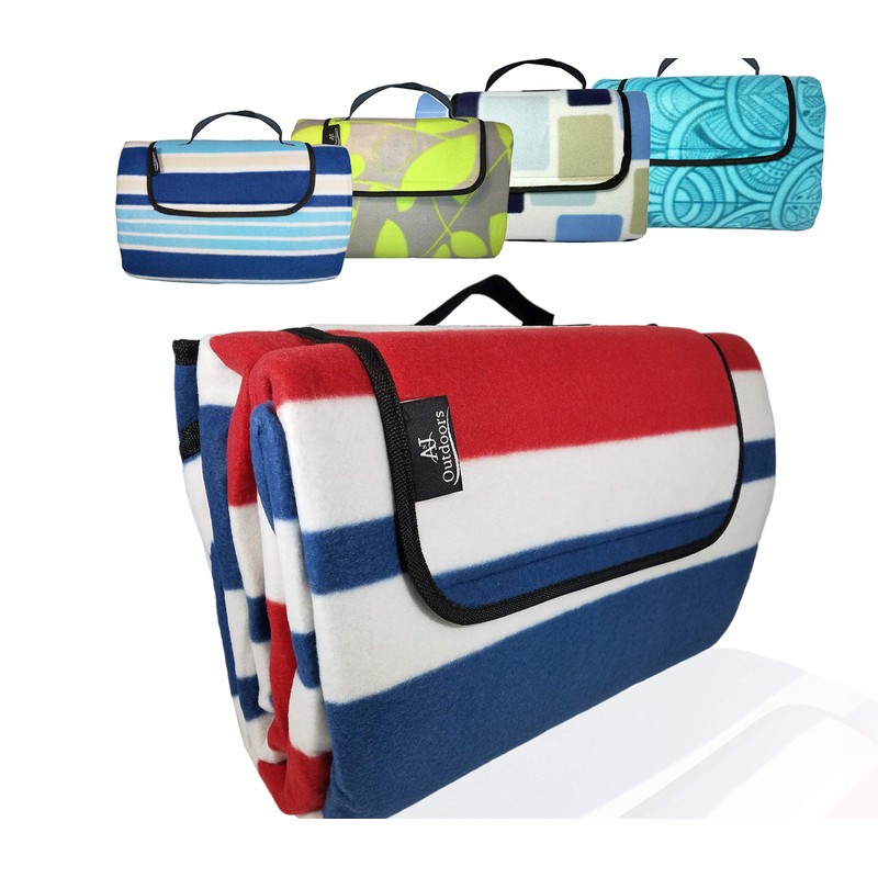ANJ XXL 3-Layer Waterproof Outdoor Blanket for Picnic and Beach(Red Stripe) 79 x 71"
