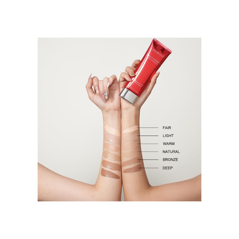 Waterproof Transfer-resistant Body Coverage: Unlike the traditional leg and body make up,Body Coverage Perfector is Waterproof,Sweatproof,Transfer-Resistant ,Scratch Resistant and can lasts for over 24 hours.