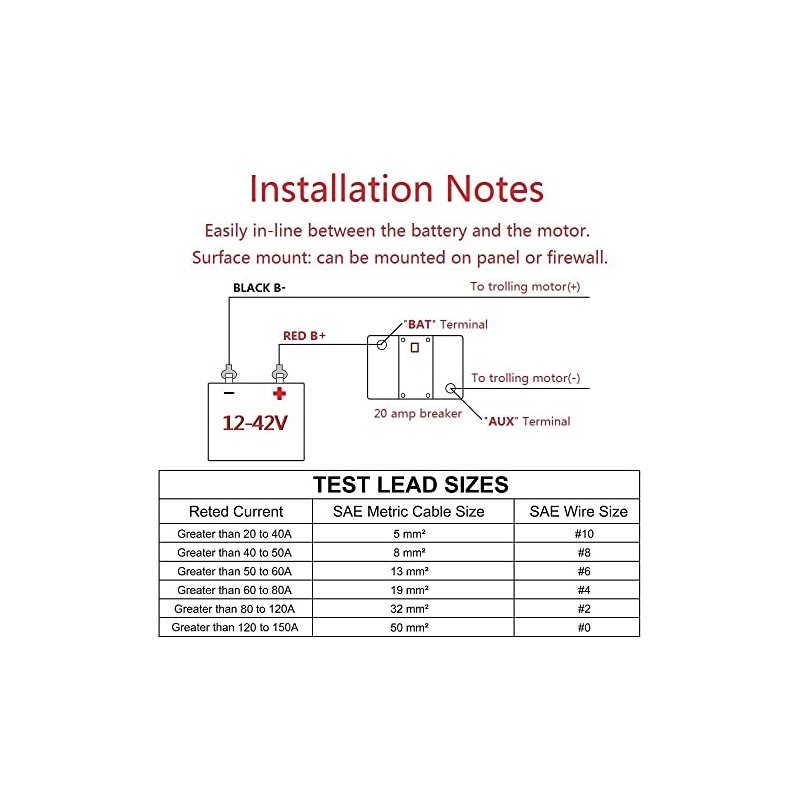 - Safe Protection --- Always protect the safety of your electronics. Two modes: current overload disconnection and manual disconnection. The resettable circuit breaker can prevent surges from damaging your amplifier and protect your trolling motor from electrical damage