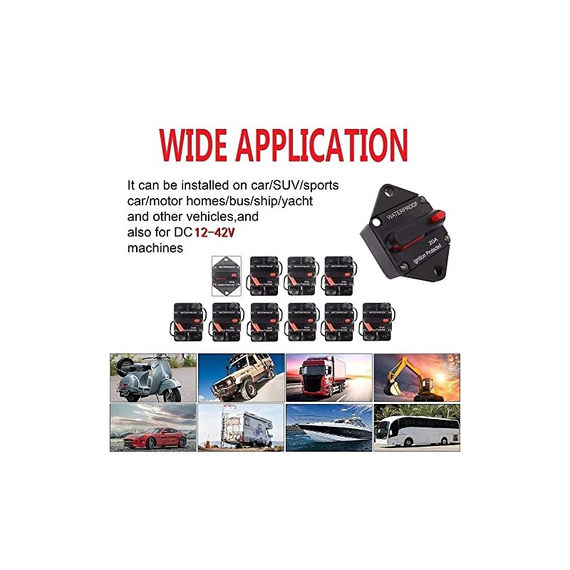 - What You Get --- Brand new, upgrade circuit breaker switch compatible with all 12V-42V DC systems, 20A 30A 40A 50A 60A 70A 80A 100A 120A 150A For Choose