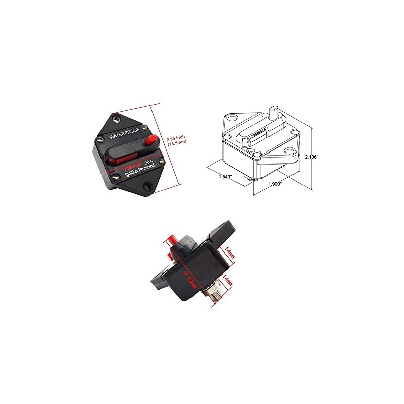 No need to keep replacing fuses anymore, simply reset breaker and you are ready to go.Specification:1. Size: 74mm /2.91in(L) x 48mm/1.89in (W) x 53mm/2.09in (H)2. Net weight: 80g3. Material: Plastic and Metal4. Voltage: 12V-42V DC5. Ampere range: 0-20A6. Work Temperature: -40 to 100 (-40H to 212H)7. Modes: ON/OFFApplication:Typically used in solar system, inverter, car audio/video system, boat, trucks, buses, RV's, ATV winches, marine and DC sound amplifier system overload protection.Features: Stops power surges from damaging your amps, protects your trolling motor from electrical damage. Good conductivity, high temperature resistance. Rubber Boots for water protection. Mount on Panel or Firewall. Easy to operate with manual reset arm.Package included:1x Upgrade 20A Circuit Breaker Reset Fuse holder 12V-42V DCEasy To Use: Manual Reset, just press on the button and the circuit will turn ON/OFF. No need to disassemble the power cord and Screw terminals hold cables securely in place.Use in place of an inline fuse holder and the unique push button reset can also be used as a Kill Switch. After the circuit is repaired, the switch turns ON and the fuse holder can be used again.Note:1. Please choose the right current circuit breaker base on your requirements.2. Please correctly push the button to avoid damage the circuit breaker.3. Please assure the products work on right working temperature to avoid too heat then stop work.4. Please do not use the product in a humid environment for a long time to avoid damage to the circuit and product.Worry-free Warranty --- Click to contact seller ANJOSHI if you are not happy with our product, we will do our best to solve your problem until you are satisfied.If You Need, Just Order.