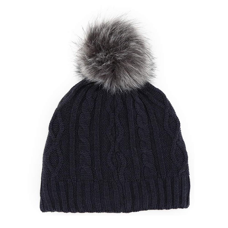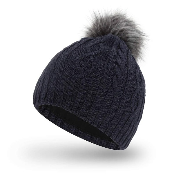 AnJuHoPa AW2020 Wool Hat Knitted Hat with Faux Fur Pompom Fine Cable Knit Headband Warm Neck Warmer 3-Piece Set or One Piece Skin-Friendly Lining for Girls and Women, 01#Asphalt