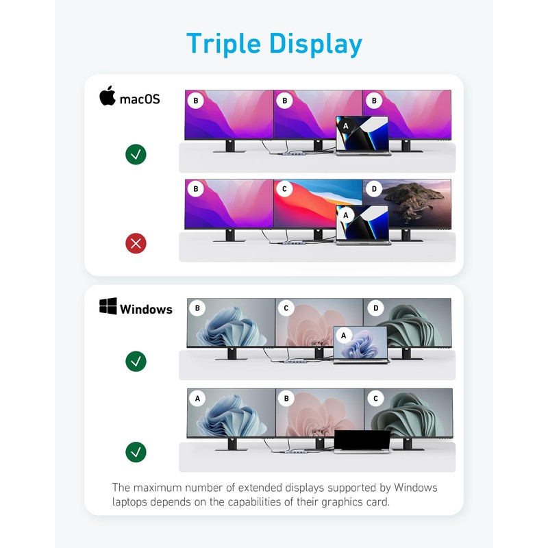 - Compatibility: Supports USB-C, USB4, and Thunderbolt connections. Compatible with MacBook (macOS 12 and newer), Windows 10 and 11, ChromeOS, and laptops equipped with DP Alt Mode and Power Delivery. Note: This device is not compatible with Linux.