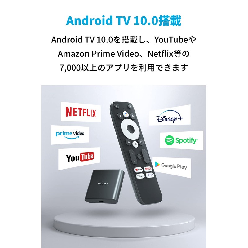 • Convert your video device into a smart TV: Equipped with Android TV 10.0. Offers endless entertainment through over 7,000 apps such as YouTube, Amazon Prime Video, Netflix, Hulu, Disney+, Taber, Abema TV, DAZN and more