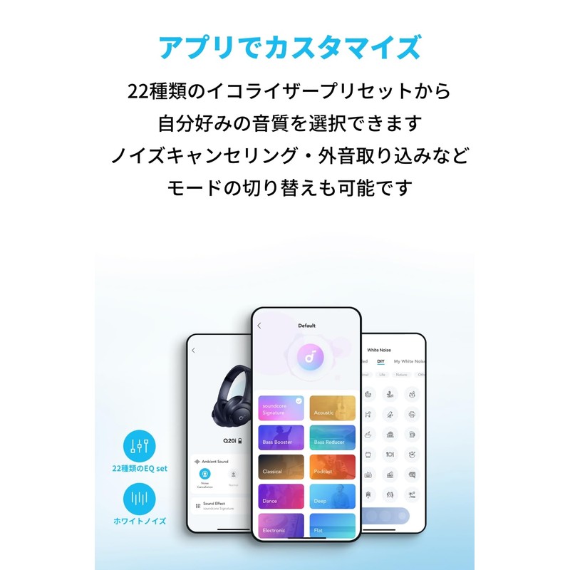 - Customizable Sound Quality Settings: Choose your preferred sound quality from 22 equalizer presets using the Soundcore app. You can freely switch between modes such as noise cancellation, standard, and external sound intake
