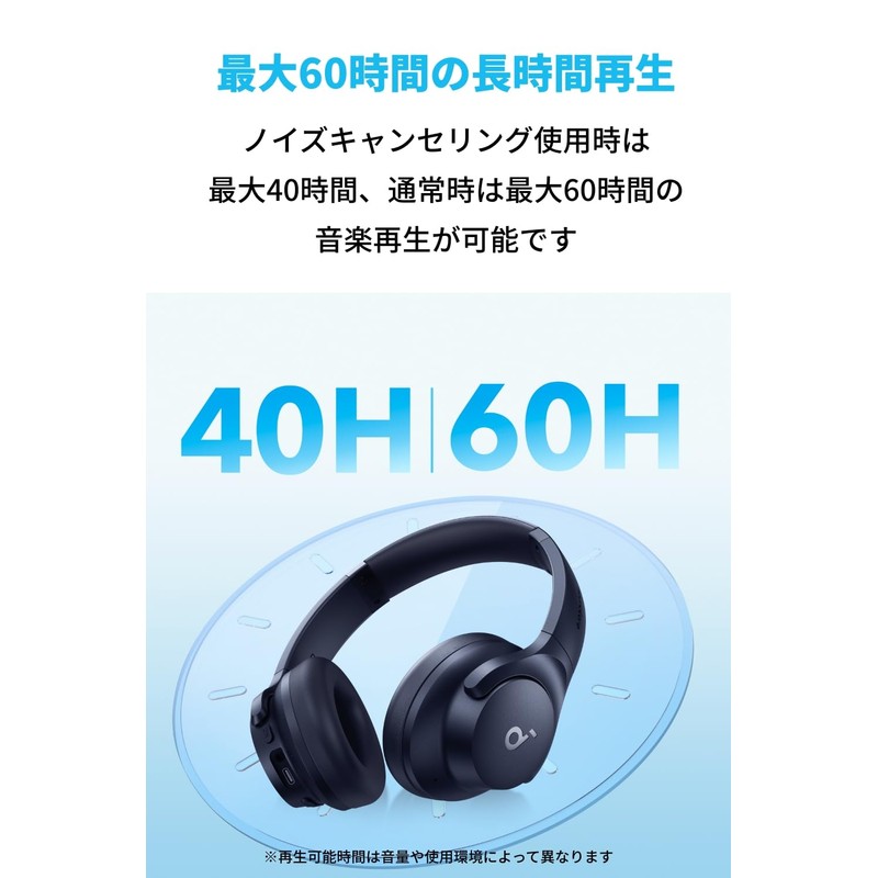 Up to 60 HOURS OF PLAYTIME: Noise cancelling up to 40 hours and 60 hours of music playback normally. 5 minutes of charge allows for approximately 4 hours of music playback. Playback time may vary depending on the volume and usage environment.