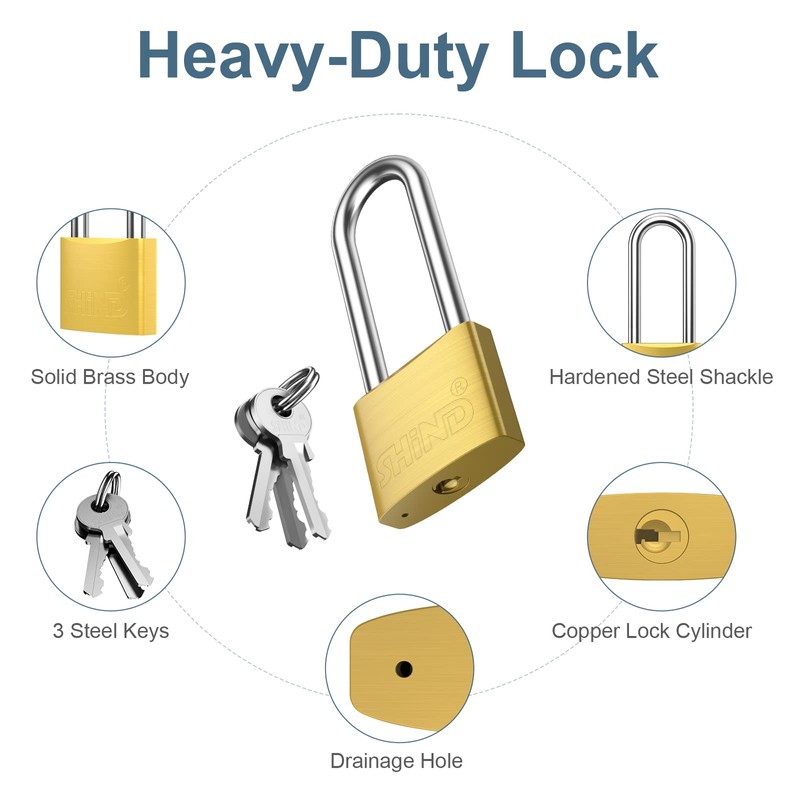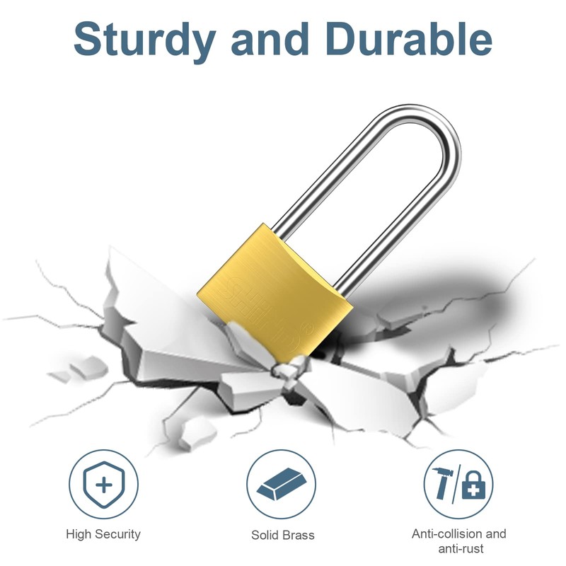 - Heavy Duty Lock: Our padlock boasts a solid brass lock body and a hardened steel shackle, ensuring maximum corrosion protection both indoors and outdoors. The lock body is made of high-quality pure copper and features a beautiful brushed surface with an elegant electroplating process. It is also waterproof, anti-embroidery, and anti-corrosion