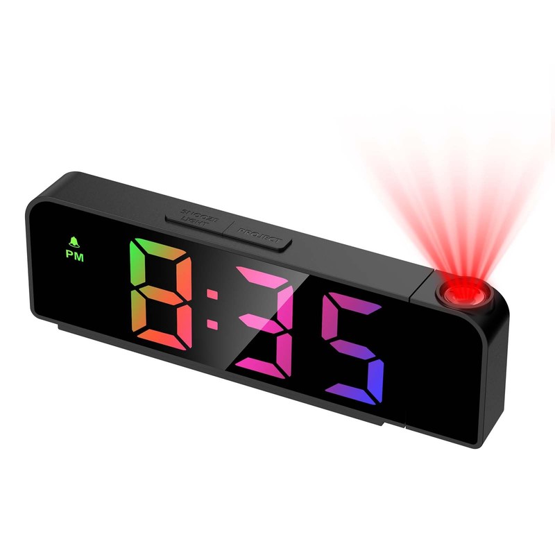 - ???.?? ?????????????? ?????????? ???????????? ?????? ????? ?° ???????????????????? ???? ?????? ?????????? 7.9 inch alarm clock with large screen, 180° projection on ceiling/wall, projector clock can display time/temperature/date. There are 2 levels of adjustable projection brightness; Note: the projection numbers are only correct if the projection direction is opposite to the screen.