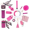 Ankilo Safety Keychain Set for Women, Wristlet Keychain Set with Personal Alarm, Earphone Case, Lipstick and Perfume Bag, Pom Pom, Card Wallet (Pink)