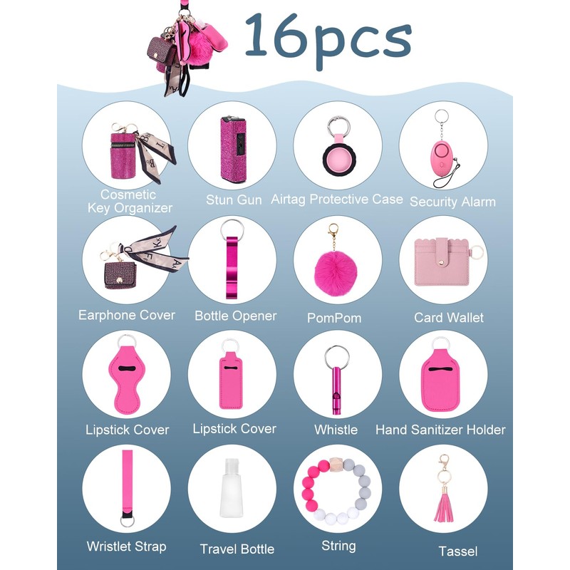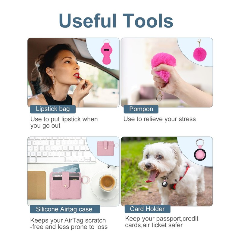 - 【Multi-Functional Tools】: This multifunctional keychain kit packs a punch. Along with the alarm, it has an 110dB+ whistle, wristband, Airtag case, earphone case, lipstick and perfume bag. A versatile kit for daily and outdoor use