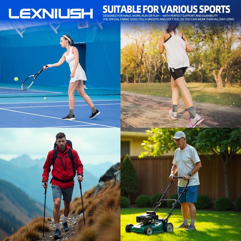• COMFORTABLE TO WEAR -- No need to worry about sweaty feet! Ankle support sleeve has a premium and durable fabric that quickly absorbs sweat, keeping your feet dry all day. Breathable and lightweight compression ankle brace that will keep your feet fresh and comfortable during the toughest workouts. You can wear the ankle sprain brace all day long! Beautiful design ankle compression brace makes you look stylish! Experience achilles tendonitis brace relief with Lexniush now!