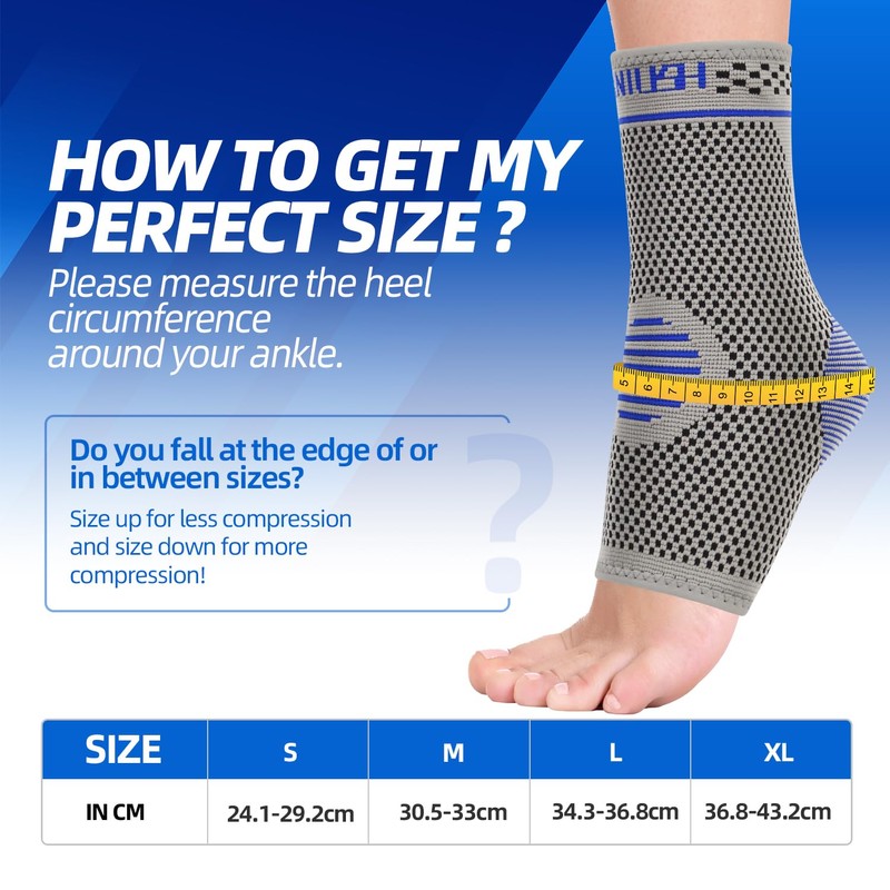 • CHOOSING THE RIGHT SIZE FOR BEST FIT -- Getting the right size is the most important. Please do not guess your size or just follow your shoe size to place an order, please measure the heel circumference around your ankle first, then check the size chart before ordering for best fit! Size up for less compression and size down for more compression! Don't worry if you don't choose the size, please contact us, we will try our best to help you!