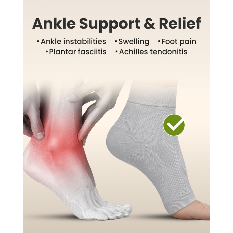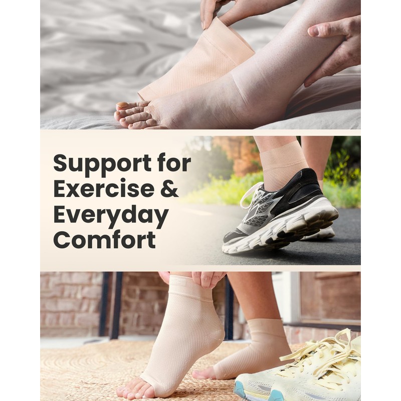 - 𝗔𝗻𝗸𝗹𝗲 𝗣𝗮𝗶𝗻 𝗥𝗲𝗹𝗶𝗲𝗳 - Wear these ankle compression sleeves under your shoes and socks for pain relief in your heels caused by plantar fasciitis, injury, sprained ankle, Achilles tendonitis, edema, heel spurs, varicose veins, fallen arches, lymphedema, swollen ankles. Our toeless ankle sleeve supports your leg all day