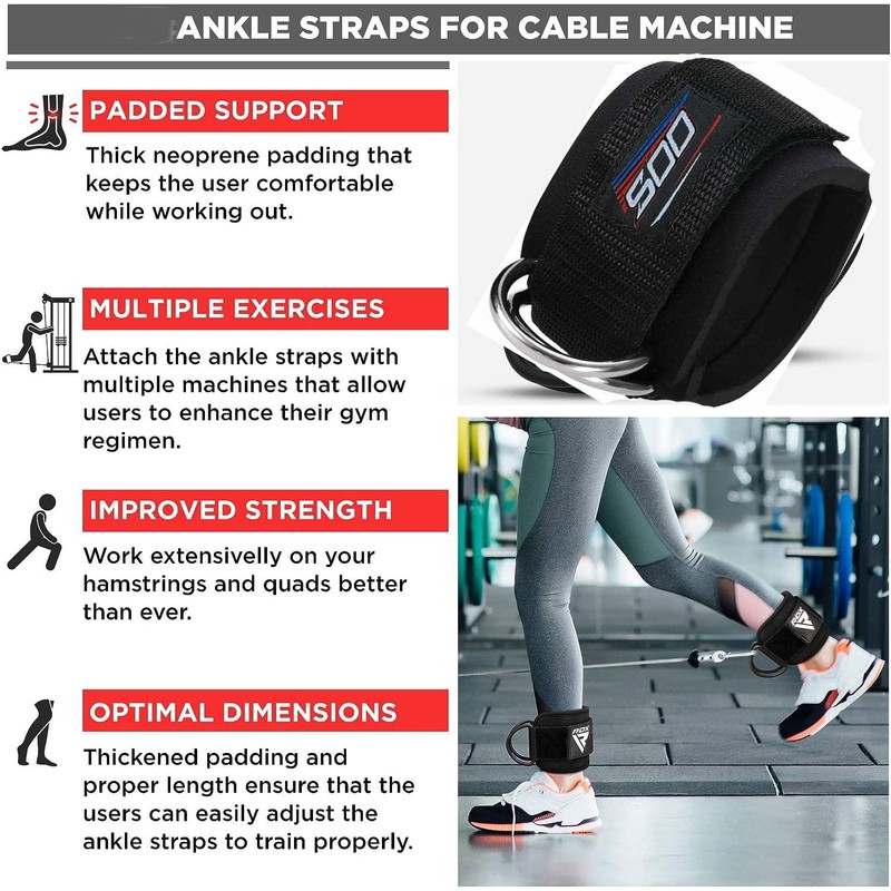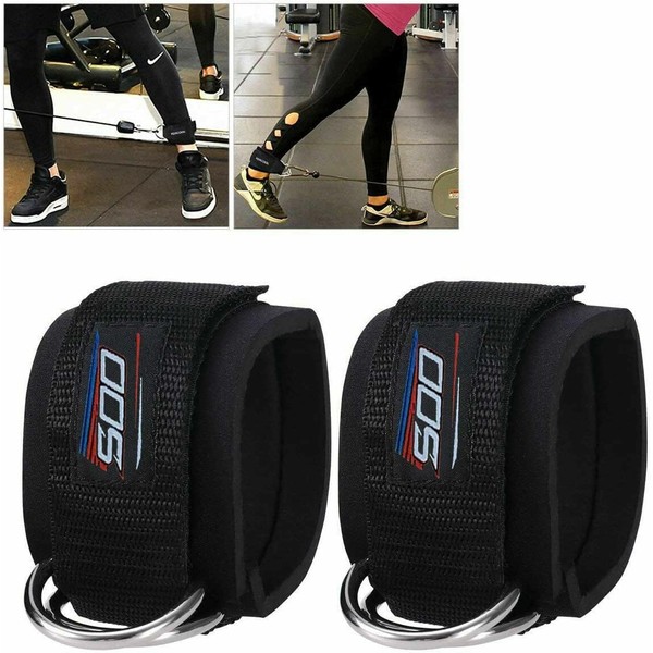 - adjustable Velcro system making it easier to use around Ankle.Double D-Ring Attachment Hooks.It is made up of neoprene material,provides support stability and makes lower body workouts more efficient.