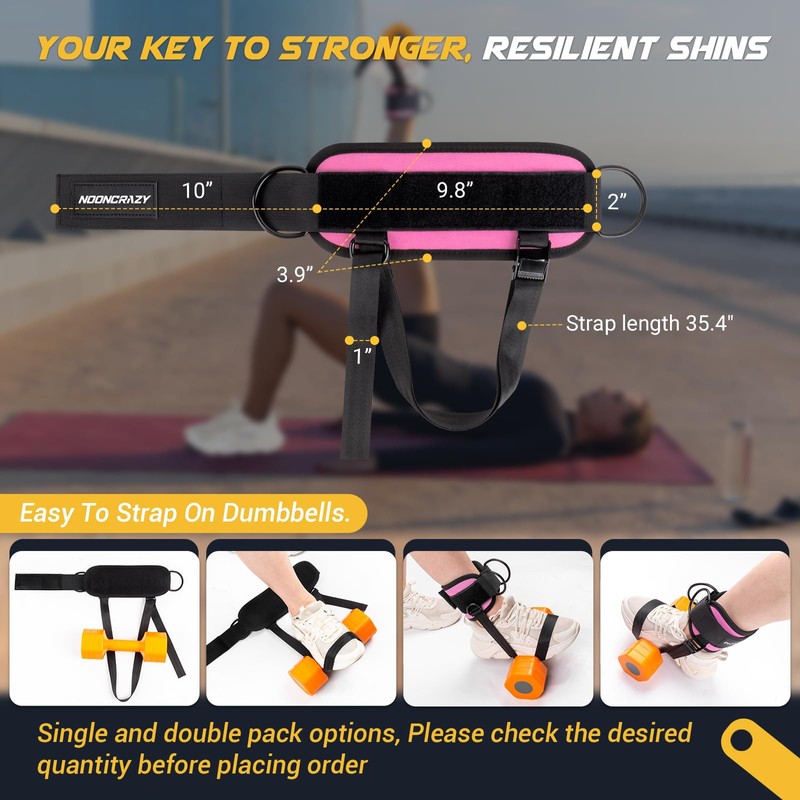nooncrazy Ankle Straps for Dumbbell and Cable Machine, Dumbbell Foot Attachment with Longer Stronger Nylon Strap, Tibialis Trainer, Leg Extensions, Hamstring Curls for Women and Men(Pink Single)