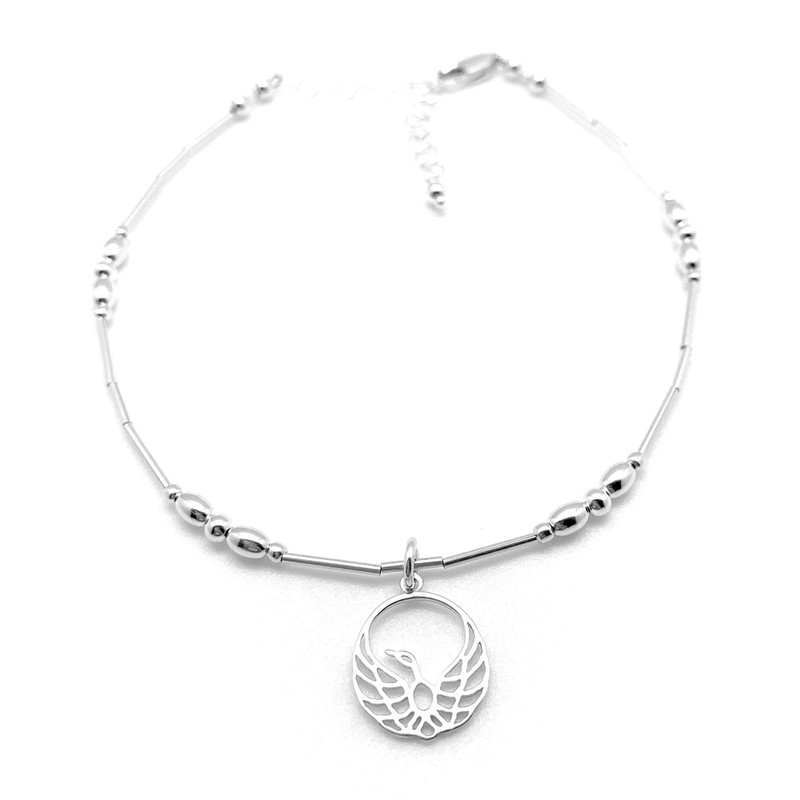This fun anklet is handmade with beautiful Sterling Silver Outlined Phoenix and Liquid Sterling Silver.