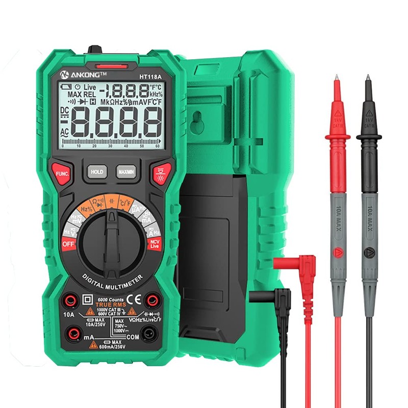 ANKONG Digital Clamp Meter Multimeter 4000 Counts Auto-ranging Amp Voltage Tester Measuring AC/DC Voltage & Current, Resistance, Capacitance, Frequency, Continuity, Live Wire Test (Plastic-118A)