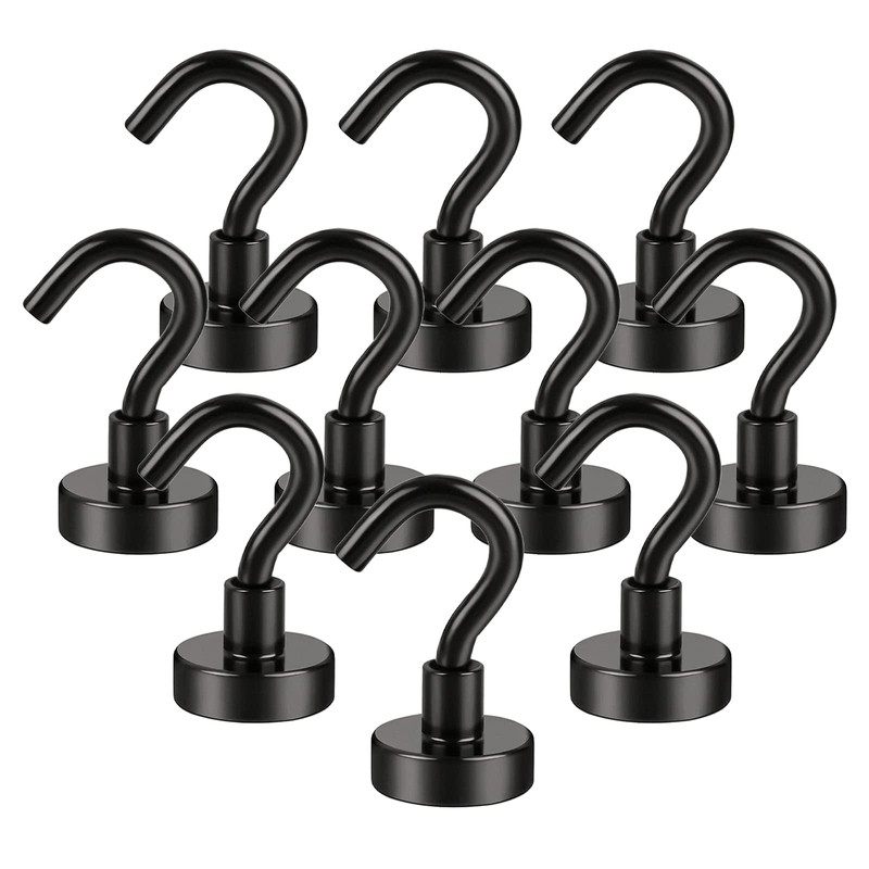 Anksixx 10 Stck Magnethaken Extra Stark, Schwarz Neodym, Super Starke Magnete mit Haken, Magnetischer Haken fr Kche Badezimmer Schlafzimmer Garage Schlie?f?cher Schlsselhalter