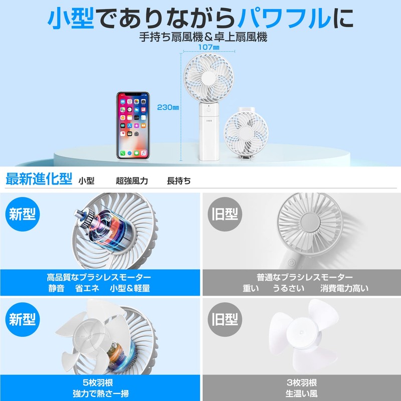 - ✔️ Compact & Easy to Carry: The compact size makes it easy to place anywhere on the table. It is more convenient to carry when you go out. Multi-change fan with function for handheld and tabletop so you can choose the mode according to your preference. Suitable for day trips, you can enjoy the joy with your best friend during summer outings