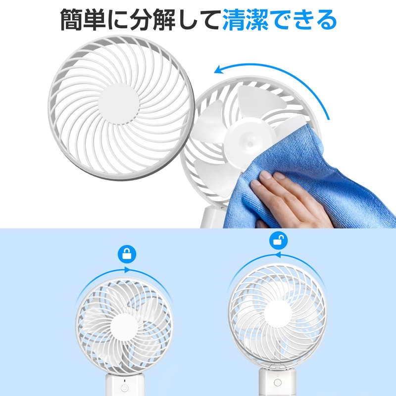- ✔️ 180° Folding & Easy to Wash: You can fold it 180° to adjust the angle you want. The battery has a stand function, making it more convenient and stable. When you go out, you can fold it and instantly become a mini mini mini fan. Can be placed in a bag or pocket. It saves space and is convenient to carry. Also, the front cover can be disassembled, making washing easier. You can always keep the fan clean