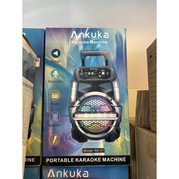 The Ak-01 model also features a memory card slot and comes in sleek black color. This Ankuka Karaoke System is the perfect addition to any party or gathering. Get ready to be the star of the show!