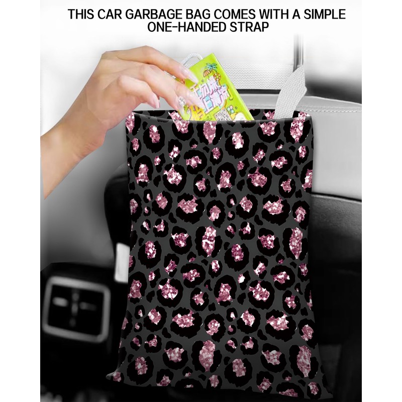 ANKVRP Car Garbage Can, Car Trash Bag, Car Garbage Bag, Hanging Car Trash Can for Car Accessories, Vehicle, Travelling, Camping, Cute Car Back Seat Organizer, Luxury Sliver Leopard