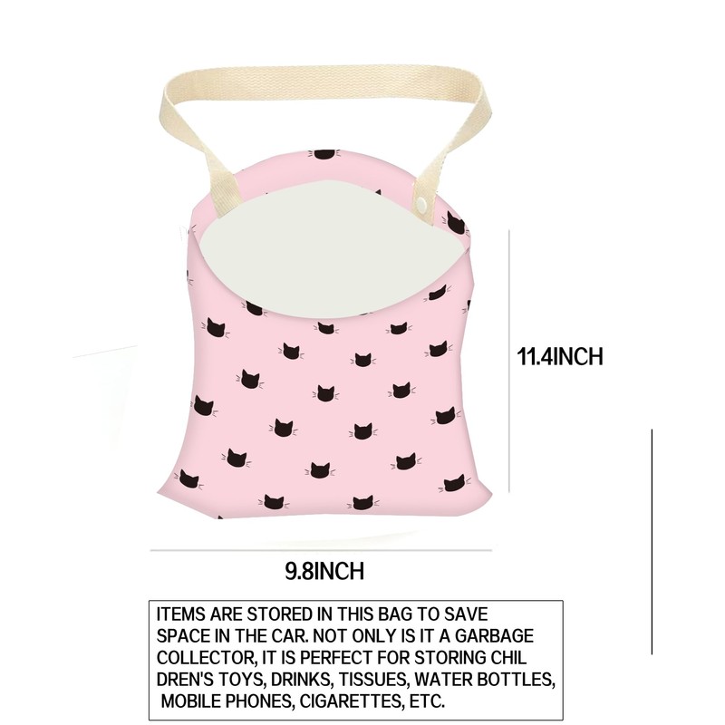 ANKVRP Car Garbage Can, Car Trash Bag, Car Garbage Bag, Hanging Car Trash Can for Car Accessories, Vehicle, Travelling, Camping, Cute Car Back Seat Organizer, Pink Cats