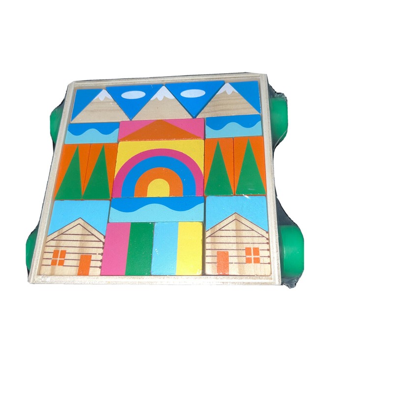 NEW Learn & Play Wooden Building Blocks Colorful 18 count/ Pull Toy on Wheels