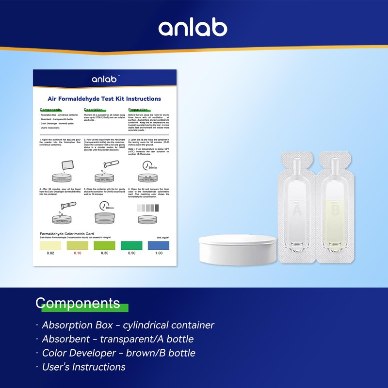 anlab™ Air Formaldehyde (HCHO) DIY Test Kit - Used for Air Quality Testing, Detector Used for Home, Residential, Business, Hotel, Hospital, School, Furniture, Auto (Pack of 3)