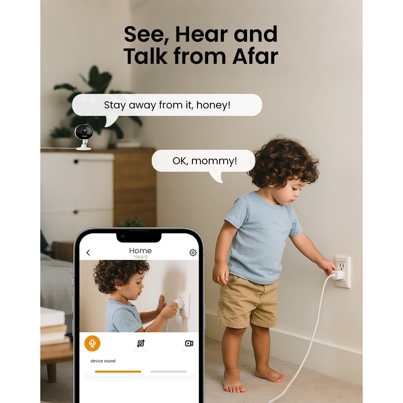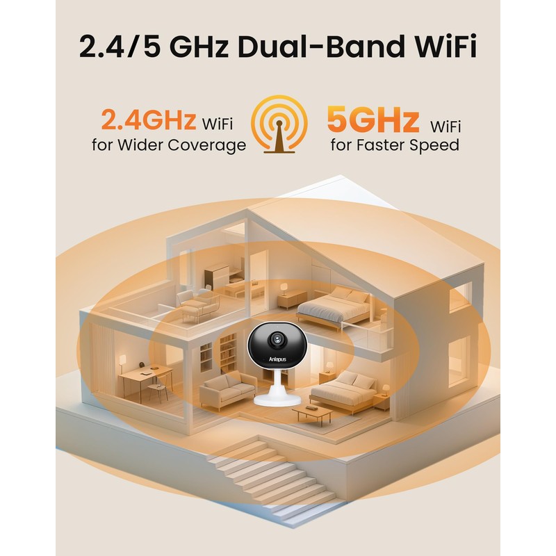 - (4). [Dual-Band WiFi & Two-Way Audio] __ Enjoy stable, high-quality video streaming with reliable connections on both 2.4GHz and 5GHz WiFi networks. Communicate clearly through the built-in microphone and speaker for crystal-clear two-way audio interaction.You can easily talk and comfort your baby or pet, providing them with reassurance and care.