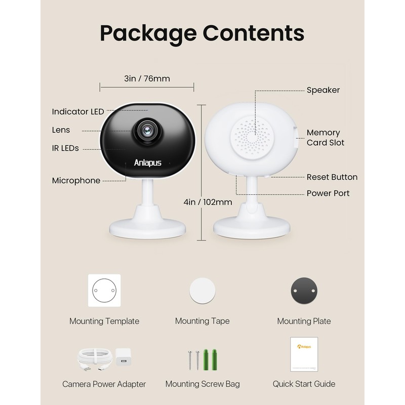 Anlapus Anlapus C688 2 x 2MP Plug-in WiFi Indoor Camera for Home Security, Pet Camera with Phone App, Smart Motion/Person Detection, 2 Way Audio, Baby Monitor, Memory Card/Cloud Storage,Easy & Quick Install