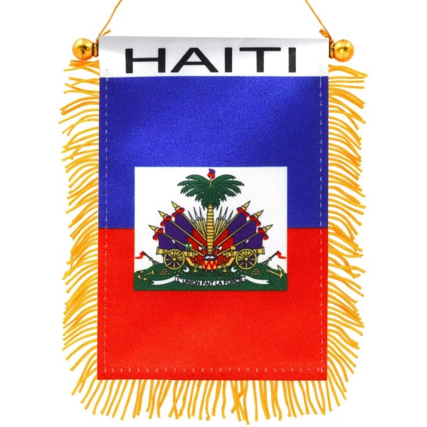 Anley 4 X 6 Inch Haiti Fringy Window Hanging Flag - Mini Flag Banner & Car Rearview Mirror Décor - Fringed & Double Sided - Haitian Hanging Flag with Suction Cup